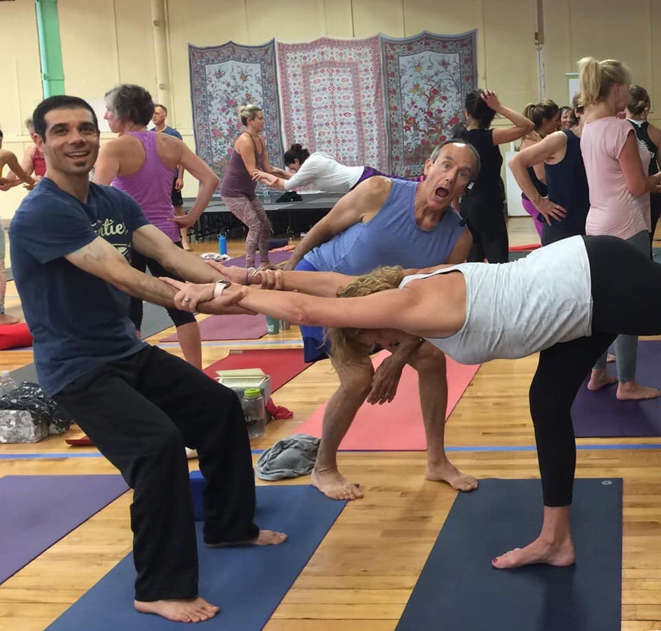 Heartsong Yoga is over the moon to host David Swenson, one of our most beloved Ashtanga teachers who has influenced our teaching and our practices for the last 20 years. In the earliest days of learning Ashtanga Yoga, David would sometimes be in the northeast for a workshop or event, and we would never miss the chance to study with him. We would fill in the gaps by using a VCR and practicing along with his videos. A group of us took a week long teacher training “back in the day” in CT, we have visited him in the Berkshires at Kripalu and at our friend Kathy McNames Yoga Vermont studio in Burlington. But usually he is in Europe, you can find him in London, Barcelona, the Netherlands, and Hong Kong…but now he is coming to Western Mass!