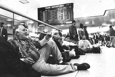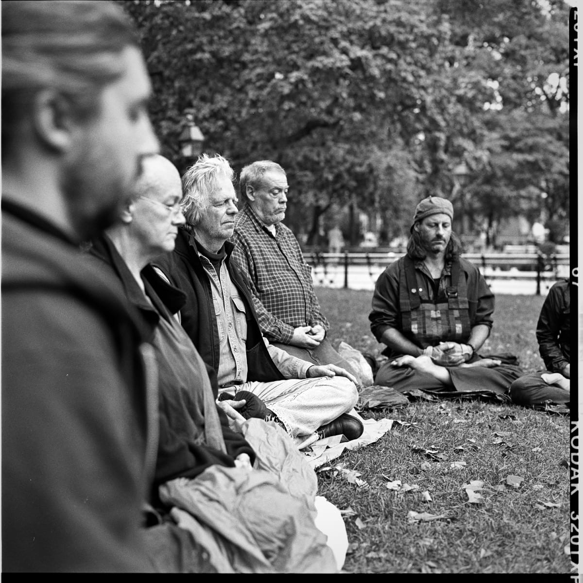 - October 6, 2009. A street retreat led by Genro Sensei and Enkyo Roshi, attended by members of the Village Zendo and other sanghas. A dozen Zen students spent 4 days on the streets of lower Manhattan. The group meditates in Washington Square Park.